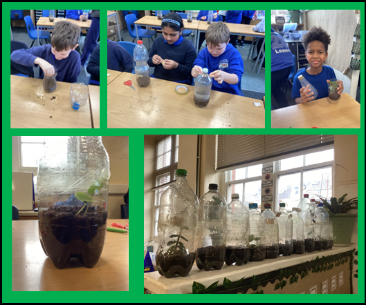 To help bring this learning to life, the children then created their own self‑sustaining biomes using recycled materials. Inside these mini habitats, they planted a variety of plant cuttings and beans.