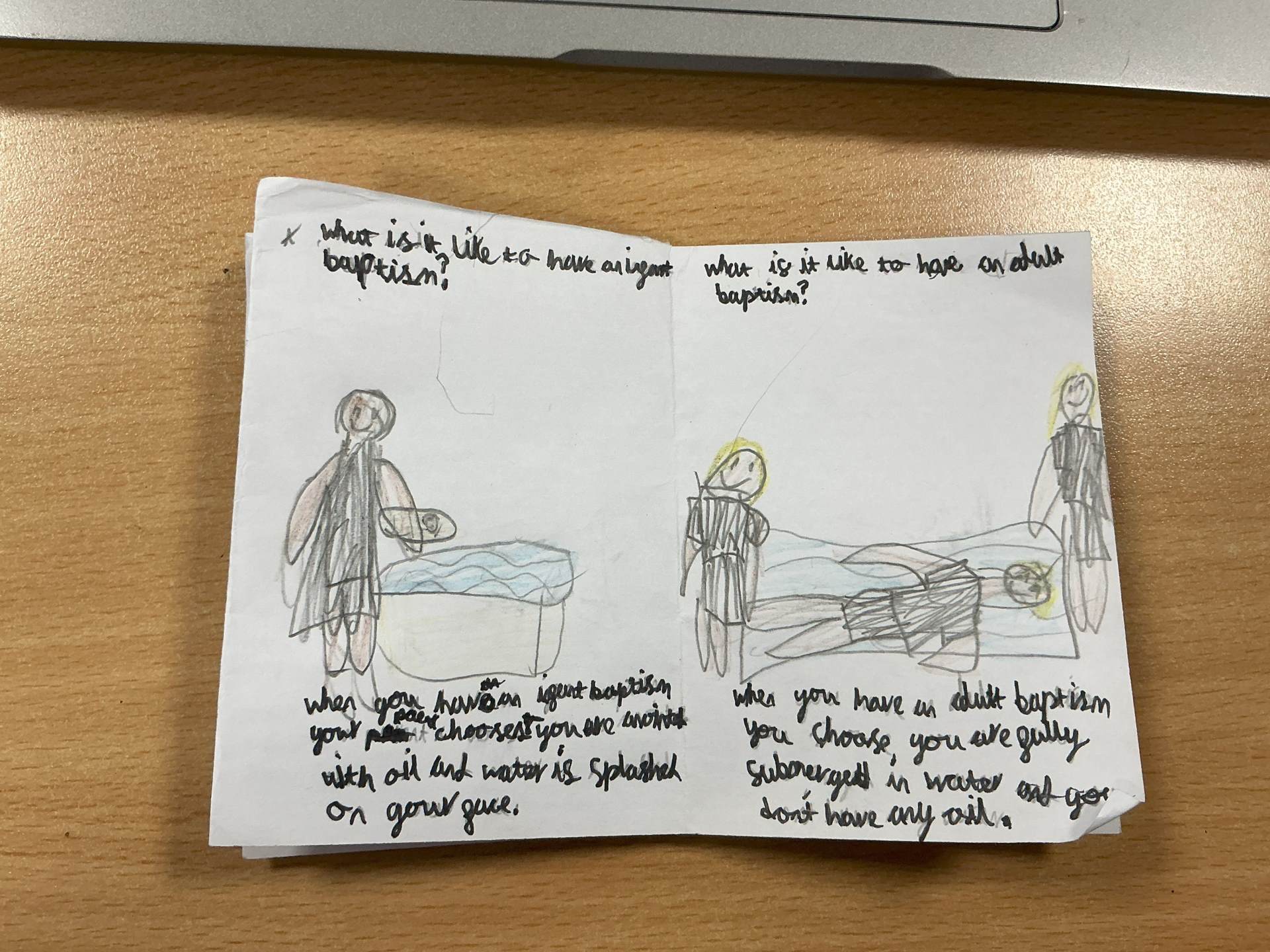 Nick gave us a wonderful insight into his beliefs and experiences, and we really enjoy listening to his baptism story (wetsuit and all!). Using his ideas, we have created little booklets to share with others about the Christian worldviews.