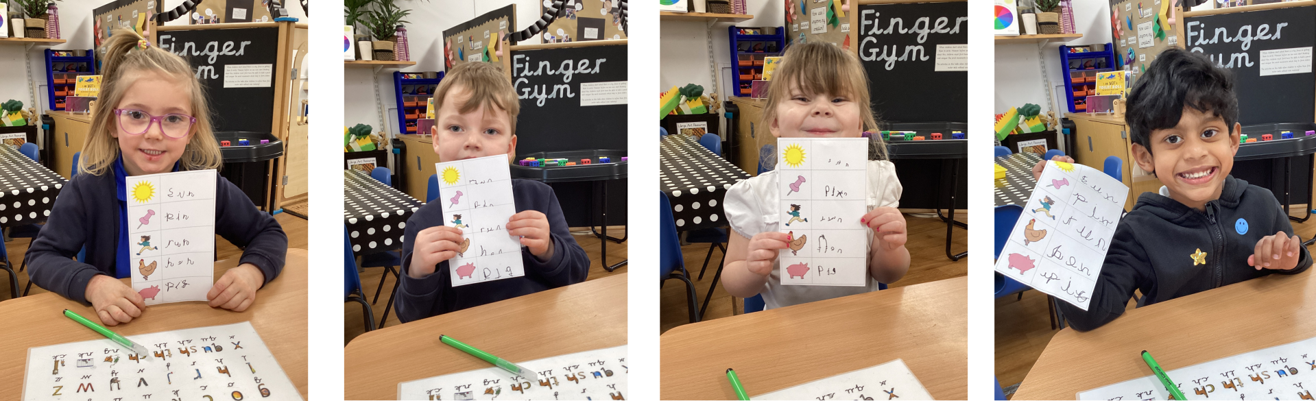 Some children from Miss Dawe's phonics group have been practising their Fred Spelling so they can independently write words with sounds that they know.