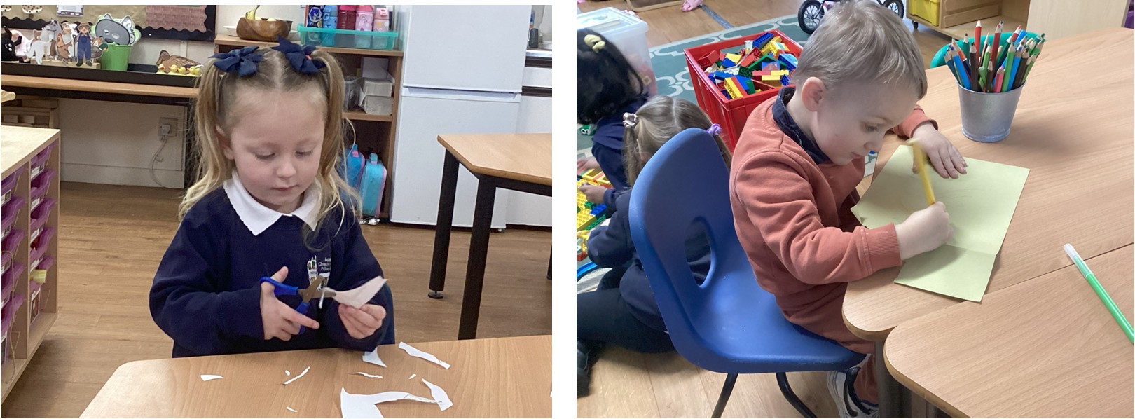 This week we been practising holding scissors correctly and cutting out winter themed pictures. We also remembered to "nip, flip and grip" before we picked up our pencils.