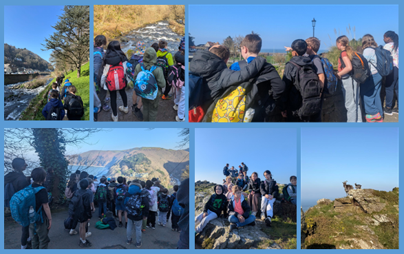 In no time we found ourselves in Lynmouth and enjoyed our packed lunches and some time in the play area by the sea. After that it was time to walk the steep zig-zag path up to Lynton - no Cliff Railway option for us today! As we crossed the bridges that cross the tracks we saw the maintenance taking place that will ensure the railway cars will be able to run well come the spring and summer and were greeted with plenty of friendly waves and encouragement! The views from the top of the path were phenomenal although not quite clear enough to see Wales.... (or whales). Enjoying being back on a flatter path, we took the coastal path around to the Valley of the Rocks. Some children scrambled up to the very top and enjoyed the views of the sea and the surrounding countryside. Our weary legs finally trekked down to the minibuses - while our spirits were lifted by the sight of the wild goats - and two babies that we affectionately named Tim and Tom.