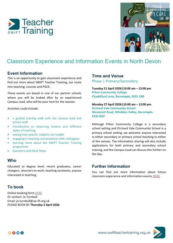 Please note: Any events featured in our school newsletter that are not organised by Ashleigh CofE Primary School, or the Harbour Schools Partnership, have not been checked or approved by us. They are shared purely for your information. |